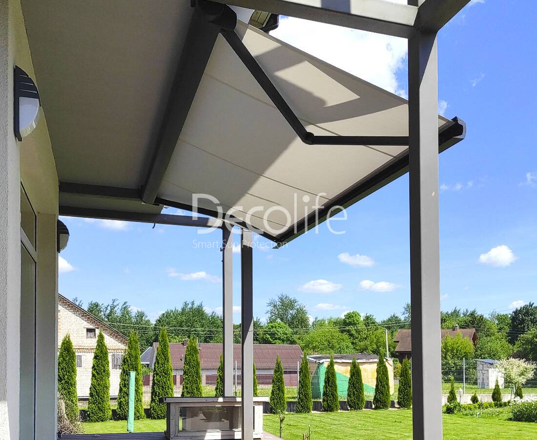Полотно в таких конструкциях имеет дышащие свойства, способность противостоять выгоранию и различным повреждениям. Дополнительным фактором прочности является использование алюминия, который делает систему надежной и при этом легкой. Маркиза легко монтируется, без проблем очищается, сохраняет привлекательность годами.