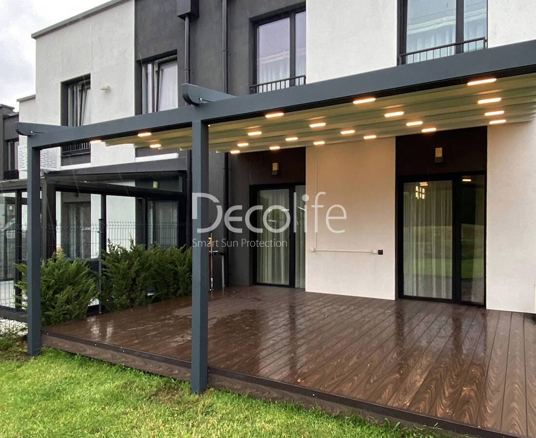 Пергола пристенная тентовая Decolife Project - ЖК "Зеленая гавань"