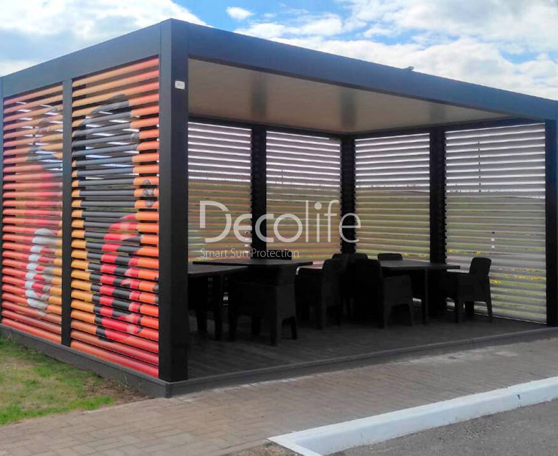 Пергола Decolife В500-25П + фасадные жалюзи FZ-44 - Беларусь, АЗС Газпромнефть