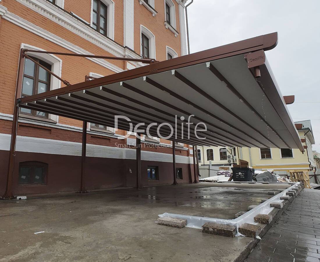 Тентовая пергола Decolife Basic&Pro New + маркизы G400, реализовано партнером "TENT VERTEX" - г. Алматы, отель "Grand Mildom"