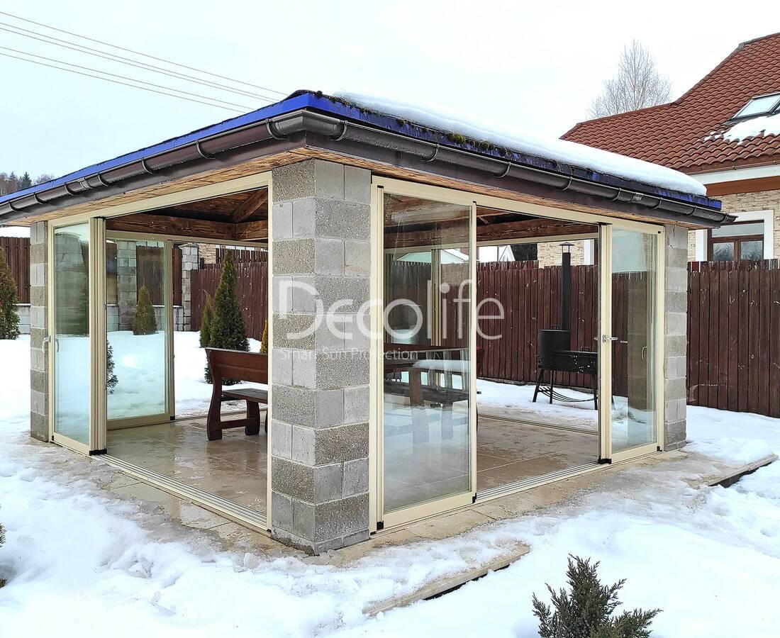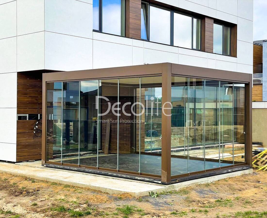 Пергола Decolife Bioclimatic B700-20С + Раздвижное безрамное остекление S100 - Минская обл., д. Светлый путь